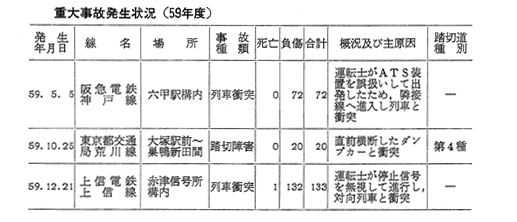 重大事故発生状況(59年度)