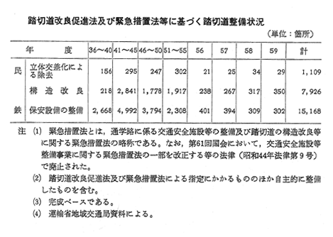 踏切道改良促進法及び緊急措置法等に基づく踏切道整備状況
