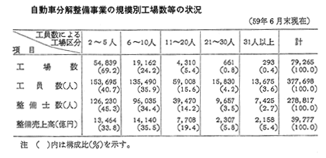 自動車分解整備事業の規模別工場数等の状況