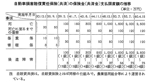 自動車損害賠償責任保険(共済)の保険金(共済金)支払限度額の推移