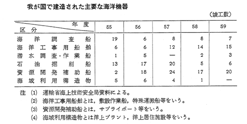 我が国で建造された主要な海洋機器