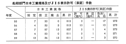 船舶部門日本工業規格及びJIS表示許可(承認)件数