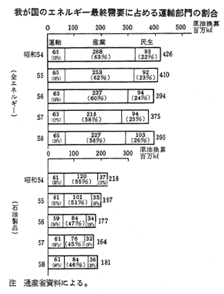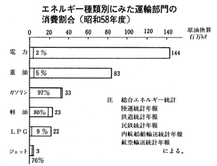 エネルギー種類別にみた運輸部門の消費割合(昭和58年度)