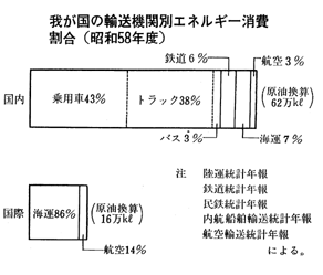 我が国の輸送機関別エネルギー消費割合(昭和58年度)