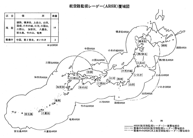 航空路監視レーダー(ARSR)覆域図