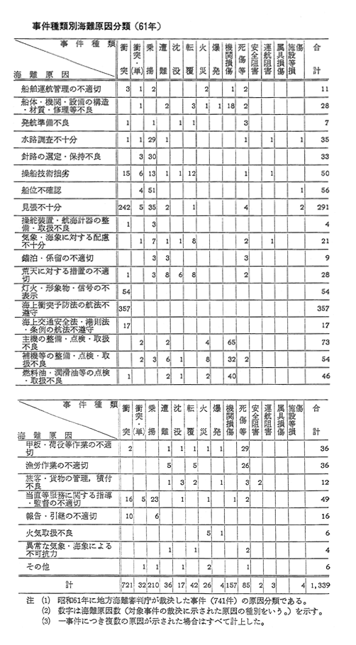 事件種類別海難原因分類(61年)