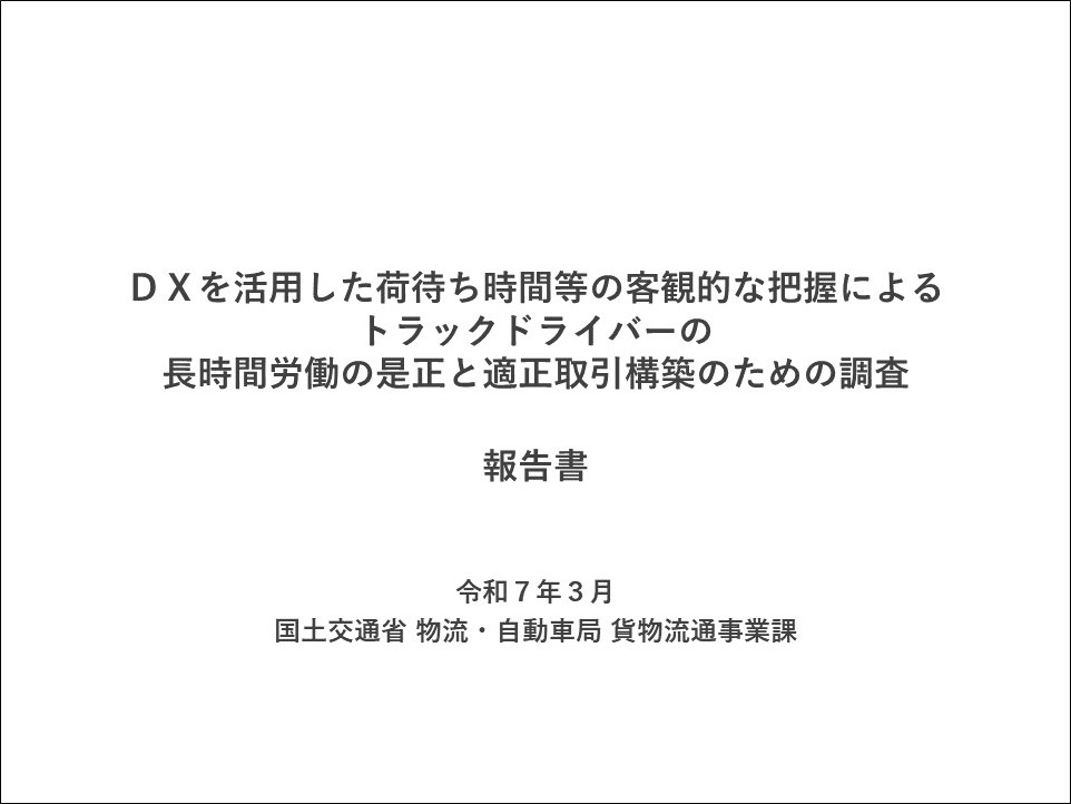●DXを活用した荷待ち時間等の客観的な把握によるトラックドライバーの長時間労働の是正と適正取引構築のための調査 報告書
