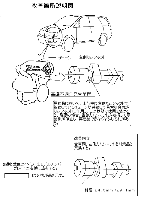 | 改善の内容 | 全車両、左側カムシャフトを対策品と交換する。 | |