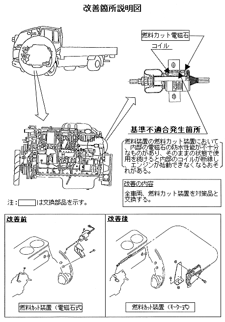 改善の内容 | 全車両、当該燃料カット装置を対策品と交換する。 | ||
