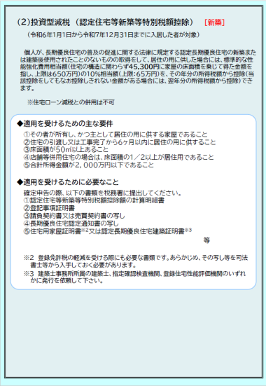 また、既存の認定長期優良住宅を取得した場合、所得税が軽減されます(住宅ローン減税のみ)。