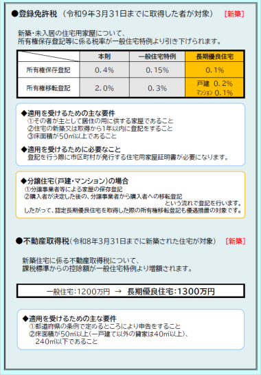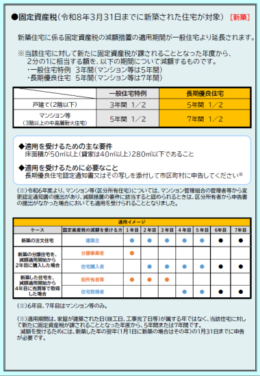 不動産取得税、固定資産税:~令和8年3月31日/登録免許税:~令和9年3月31日 までに入居した方が対象です。
