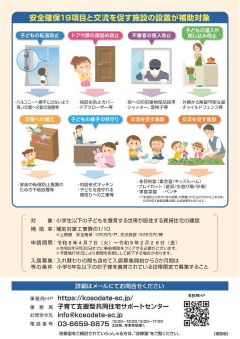 子育て支援型共同住宅推進事業は、共同住宅(賃貸住宅、分譲マンション)の新築・改修時に、住宅内での事故防止などの安全対策を目的とした補助制度です。