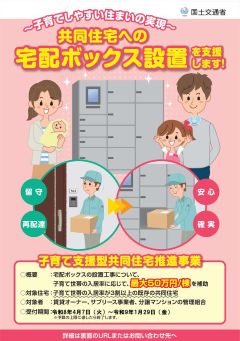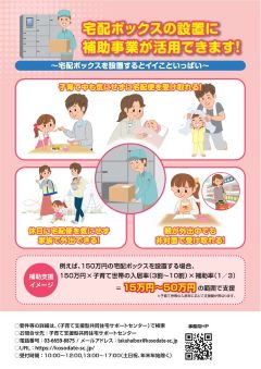 ○概要 :宅配ボックスの設置工事について、子育て世帯の入居率に応じて、最大50万円を補助