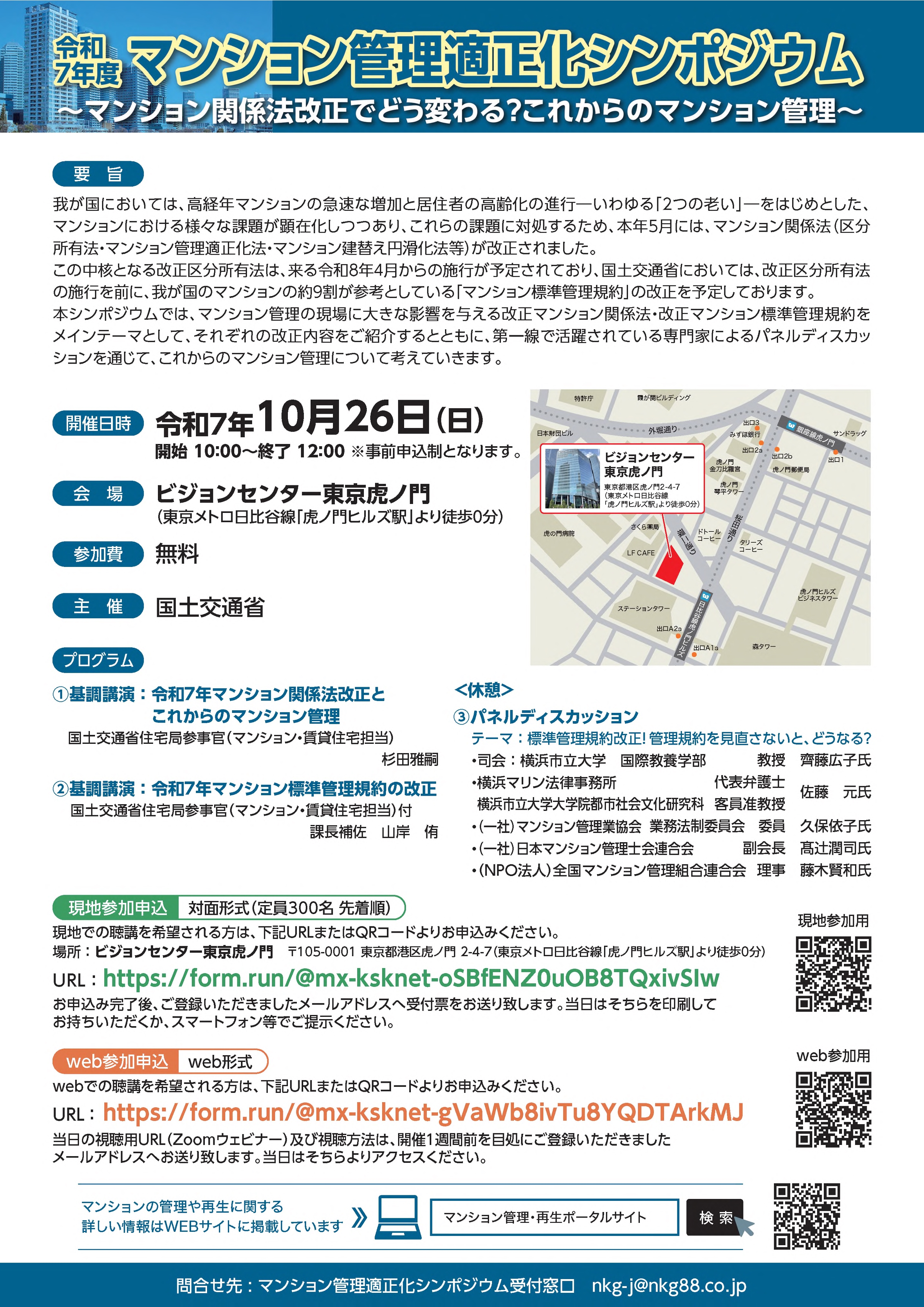 令和7年度 マンション管理適正化シンポジウム 【New】 |