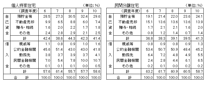 [参考1] 一戸当たり住宅建築(購入)資金に占める調達先別資金割合