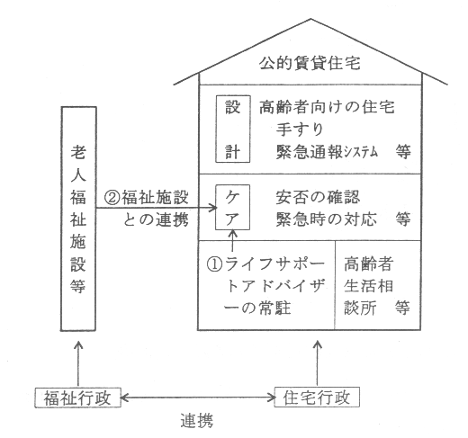 また、福祉施策と住宅施策の密接な連携のもと、ライフサポ−トアドバイザ−の配置等によるケア付き公営住宅(シルバ−ハウジング)の供給を積極的に推進する。