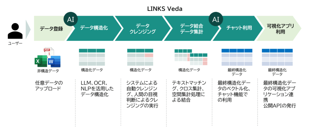 Project LINKSは、国土交通省が主導する国土交通分野のデータ整備・活用・オープンデータ化プロジェクトだ。申請書や報告書といった行政における紙文化の情報資産を、AIの力で構造化し、データに基づいた政策立案や新たなビジネス創出につなげることを目指している。