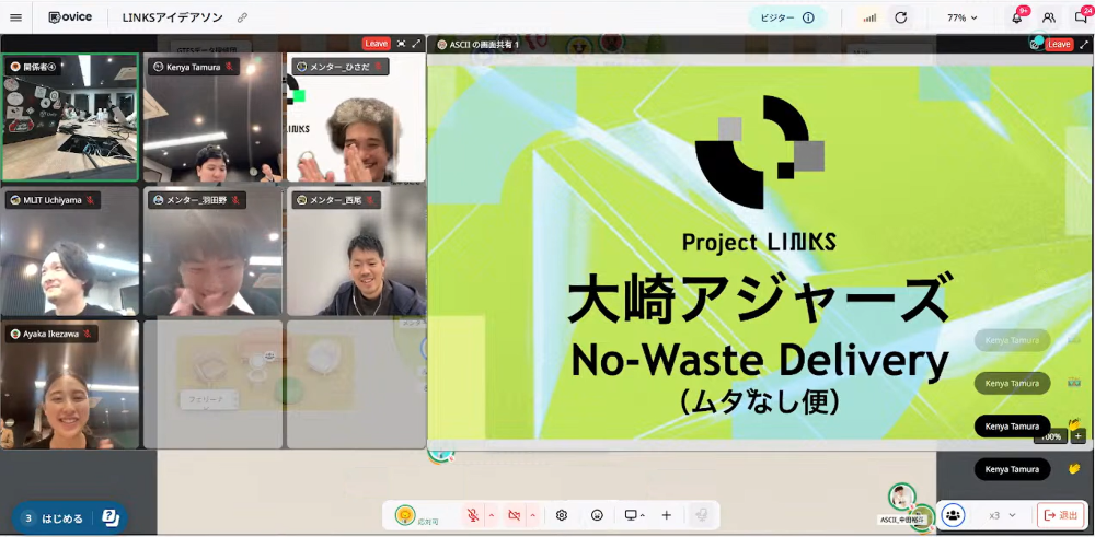 チーム・大崎アジャーズは、地方での配送の課題を解決するプラットフォーム「No-Waste Delivery」のアイデアを発表した。