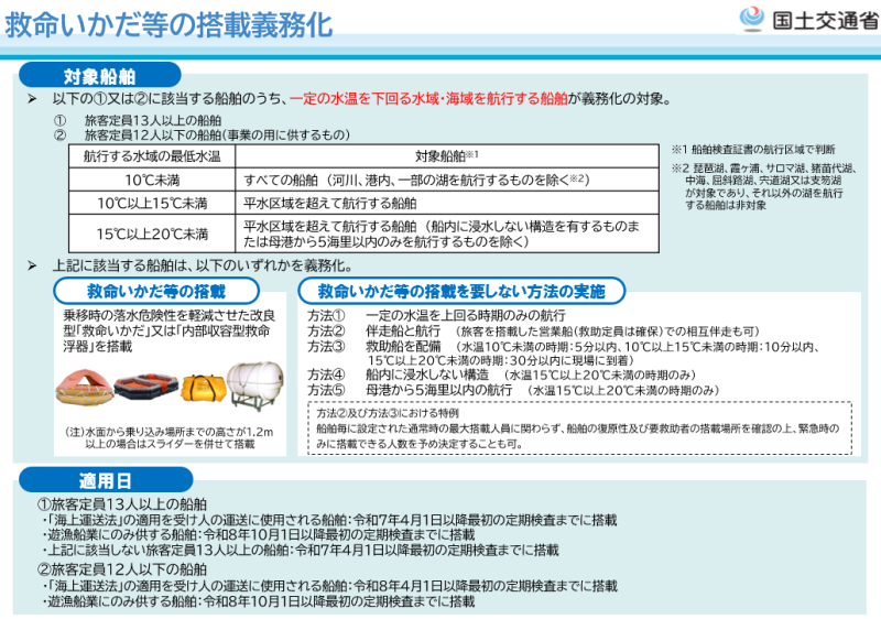 救命いかだ等の搭載を要しない方法を定めています。詳細はこちらをご覧ください。