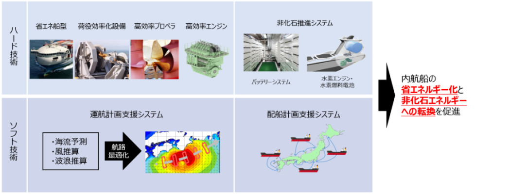 我が国は2050年までにカーボンニュートラルの達成を目指して、あらゆる分野における省エネルギー化及び非化石エネルギーへの転換に向けた取組を進めています。また、第6次エネルギー基本計画においては、2030年度の内航海運分野における省エネルギー削減目標(2013年比)に対して原油換算で48万klから62万klへの上方修正が行われ、当該分野においても引き続きこれら取組の強化・加速が急務です。