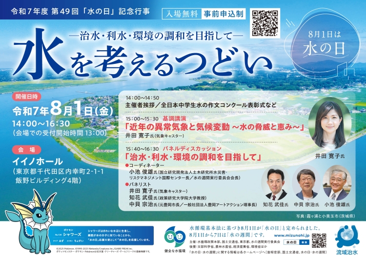 令和7年8月1日(金)に東京都千代田区のイイノホールにおいて、「水の日」を記念する政府主催行事「第49回水を考えるつどい」を開催しました。