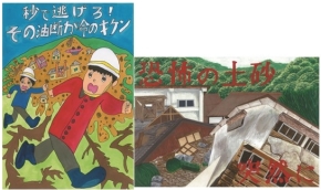国土交通省では、土石流、地すべり、がけ崩れ等の土砂災害から人命、財産を守るため、毎年6月を「土砂災害防止月間」と定めています。土砂災害防止絵画・作文の募集は、土砂災害防止月間の行事の一環として、次代を担う小・中学生に、土砂災害及びその防止についての理解と関心を深めてもらうために実施しています。