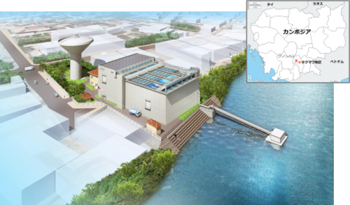 首都プノンペン近郊のタクマウ市において、取水施設、浄水施設等を新規に整備して、水供給能力を向上させる事業です。JICA初の事業・運営権対応型の無償資金協力事業※で、施設整備に加え、運営・維持管理も本邦企業が担います。日本の持つ、施設整備、運営・維持管理を効率的に行うノウハウにより、水道料金を抑制しつつ、比較的貧困層の多い地域においても、質の高い給水サービスを提供することが期待されています。