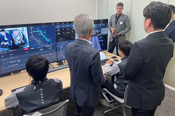 自動運転車の試乗において、公道での交差点の通過や右左折、車線変更などを体験するとともに、遠隔管制室において公道を走行する自動運転車の遠隔監視状況を確認したほか、意見交換を行いました。