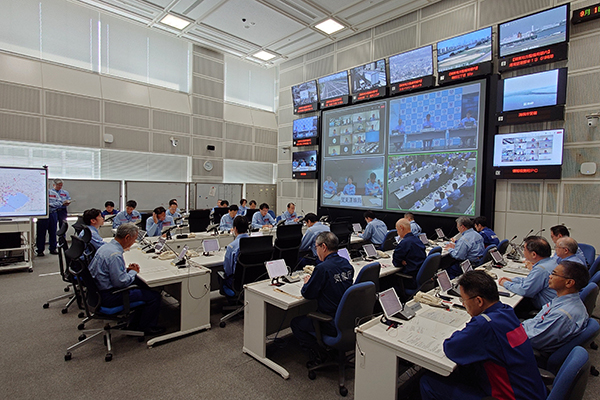 訓練中の防災センターの状況