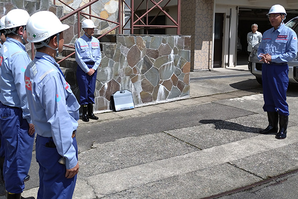視察中、国定政務官は、水谷平の現場に泊まり込んで砂防工事に取り組んでいる立山砂防事務所水谷出張所職員等を激励しました。