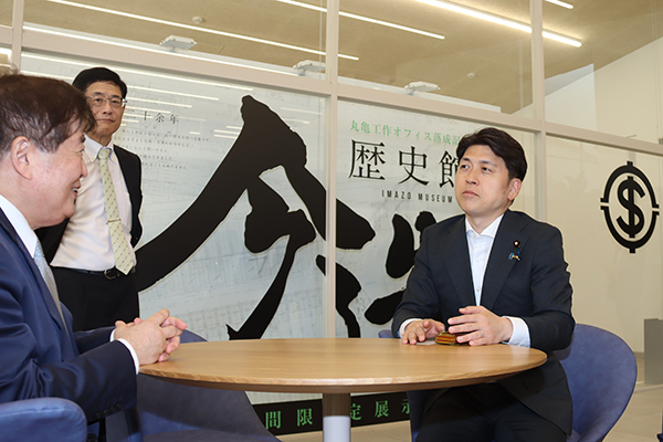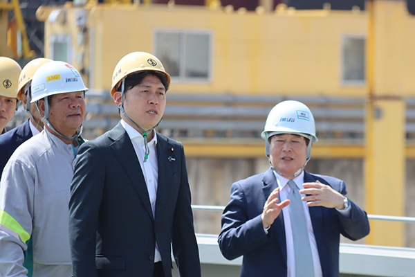 9月11日(木)、中野大臣は、世界最大級の建造ドックや試験水槽などの最新鋭の造船設備を擁する今治造船丸亀事業本部(香川県丸亀市)を訪問しました。