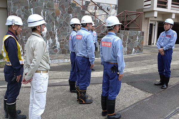立山砂防事務所水谷出張所職員等を激励する中野大臣