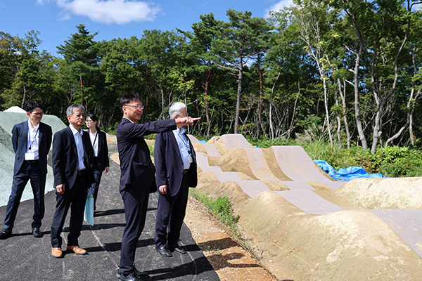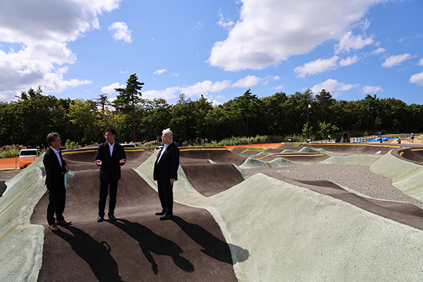 パンプトラックを視察する国定政務官