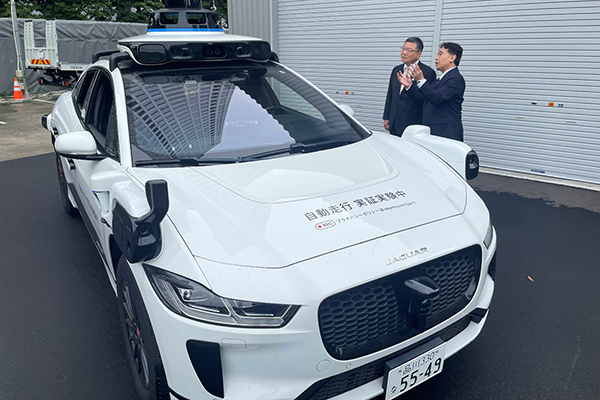 10月16日(木)、古川副大臣は、日本交通株式会社の車両基地を訪問し、日本での自動運転技術の実装を目指しているWaymoの車両を視察しました。