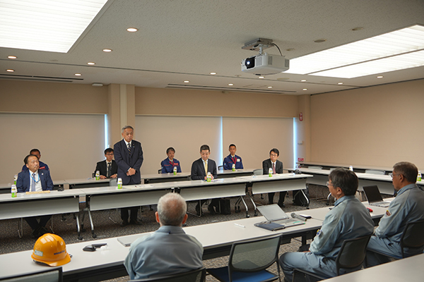 10月17日(金)、高橋副大臣は、茨城県の茨城港常陸那珂港区を訪問し、港の利用状況、中央ふ頭地区で整備中の岸壁及び(株)小松製作所茨城工場における大型建設機械の製造過程を視察しました。