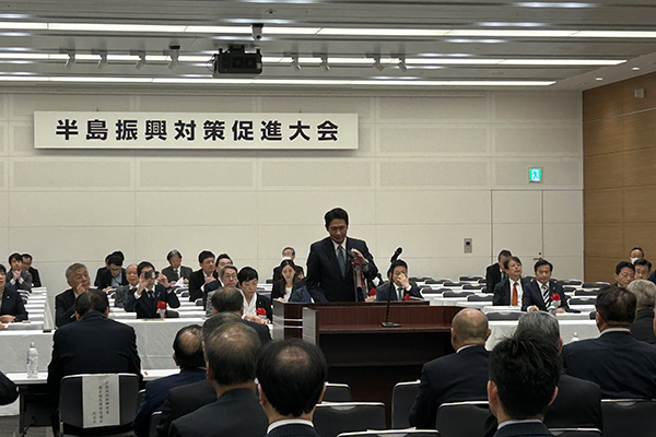 10月29日(水)、加藤政務官が半島振興対策促進大会(主催:半島地域振興対策協議会、半島地域振興対策議会議長連絡協議会、全国半島振興市町村協議会)に出席しました。