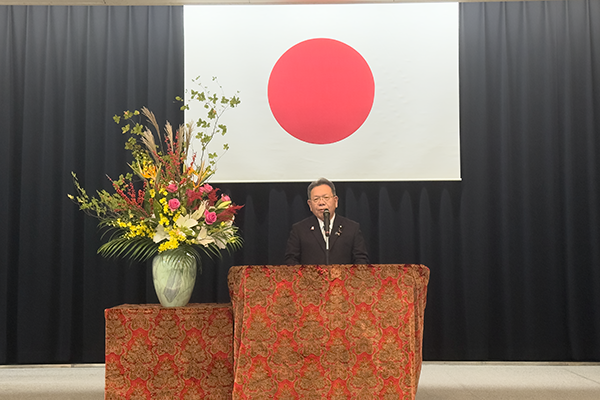 表彰式で挨拶する酒井副大臣