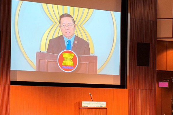 開会挨拶を行うカオASEAN事務総長(ビデオメッセージ)