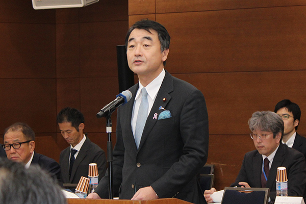 地すべりがけ崩れ対策都道府県議会協議会で挨拶する佐々木副大臣