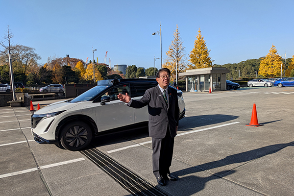 12月1日(月)、金子大臣は、AIを搭載した日産自動車が開発中の自動運転車に試乗しました。