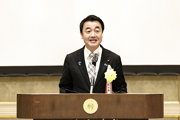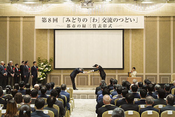 佐々木副大臣は、「緑の都市賞」、「緑の環境プラン大賞」、「緑化技術コンクール」の各受賞者に対し、「緑による都市環境の改善や景観の向上などに日々取り組んでいただいていることに深く敬意を表する。」と祝辞を述べました。