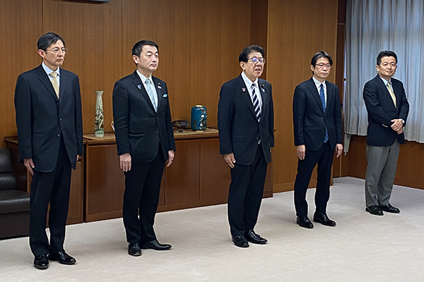 1月13日(火)、一般社団法人日本鳶工業連合会の岡本会長をはじめ、木遣り師の方々が国土交通省を訪れ、金子大臣、佐々木副大臣らに「木遣り」を披露されました。
