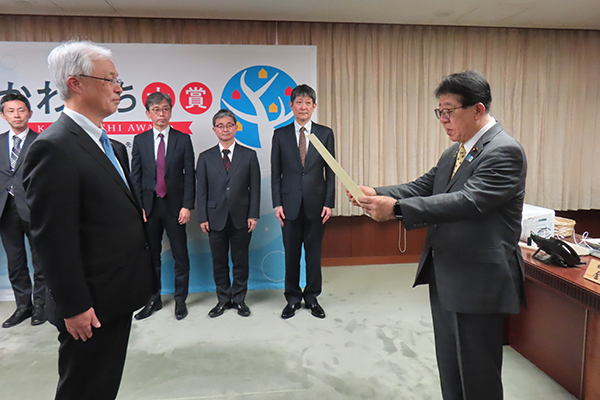 1月19日(月)、金子大臣は、令和7年度「かわまち大賞」表彰式に出席し、かわまち大賞として決定した「砂川地区かわまちづくり」(北海道砂川市)「伊豆の国市かわまちづくり」(静岡県伊豆の国市)の代表者に対して、表彰状と楯を授与しました。