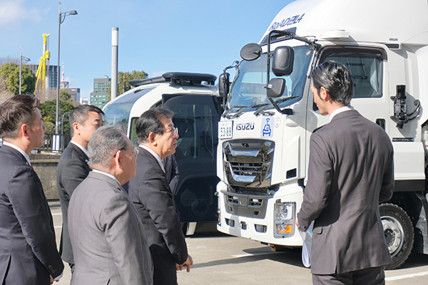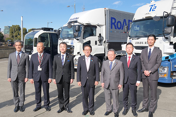 また、会議に先立ち、金子大臣、佐々木副大臣、酒井副大臣、永井政務官はいすゞ自動車(株)及び(株)T2の自動運転トラック、トヨタ自動車(株)の自動運転対応EV車両(e-Palette)を視察しました。
