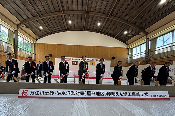 2月22日(日)、金子大臣は、熊本県が国の補助を受け実施している砂防堰堤工事の着工式に出席しました。