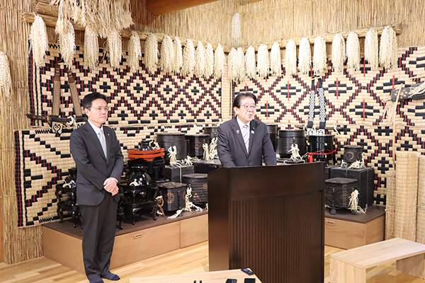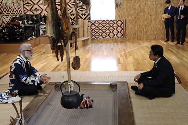 2月28日(土)、金子大臣は、北海道白老町を訪れ、アイヌ文化の復興等の拠点であるウポポイ(民族共生象徴空間)を視察しました。
