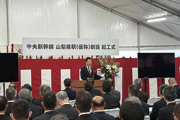 3月11日(水)、リニア中央新幹線山梨県駅(仮称)の安全祈願・起工式に永井政務官が出席し、祝辞を述べました。