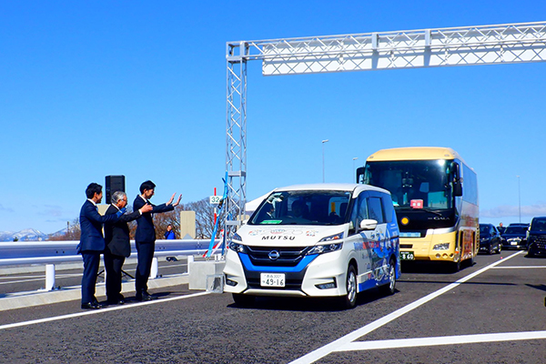加藤政務官は、3月14日(土)に青森県で行われた下北半島縦貫道路「むつ南バイパス」「横浜南バイパス・横浜北バイパス一部」の開通式典に出席しました。
