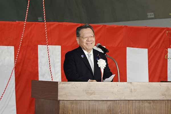 開通式典で挨拶する酒井副大臣