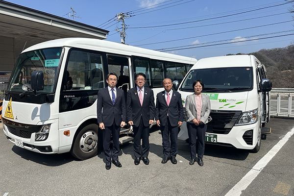 スクールバス、乗合タクシーを視察する金子大臣
